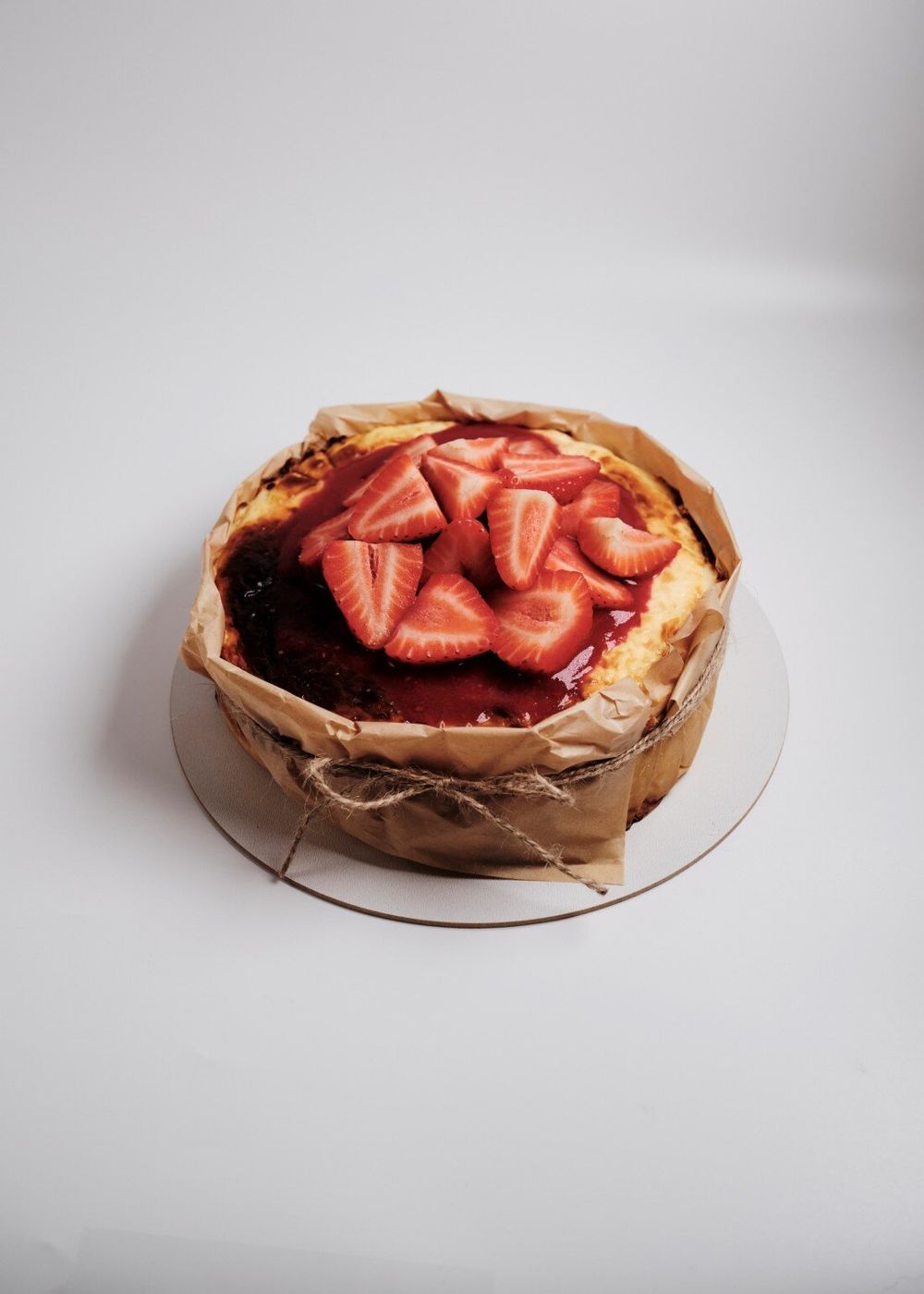 Чизкейк Сан-себастьян с ягодным соусом и свежей клубникой