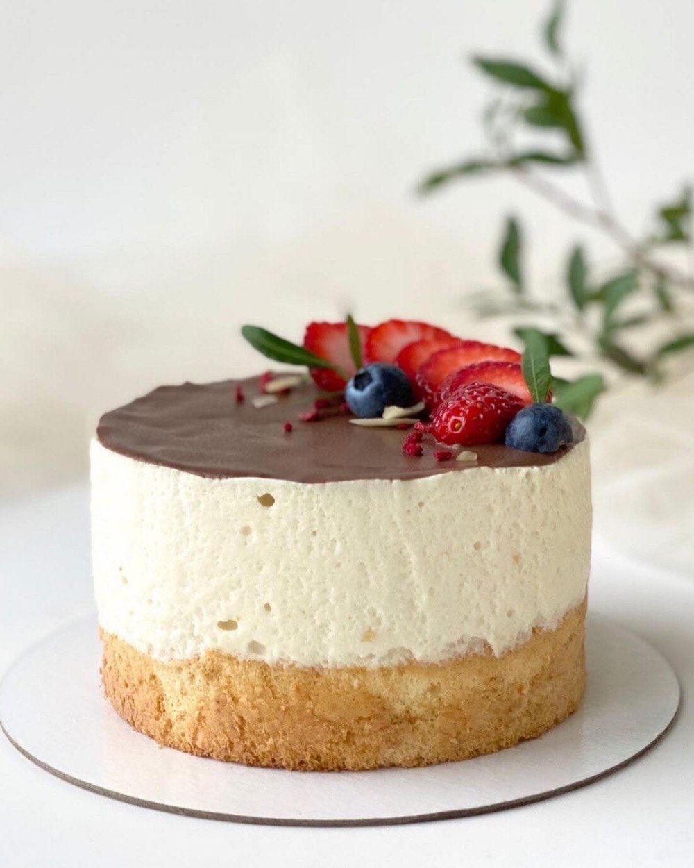 Ванильный бисквит, нежнейшее суфле и шоколадная глазурь на молочном шоколаде.