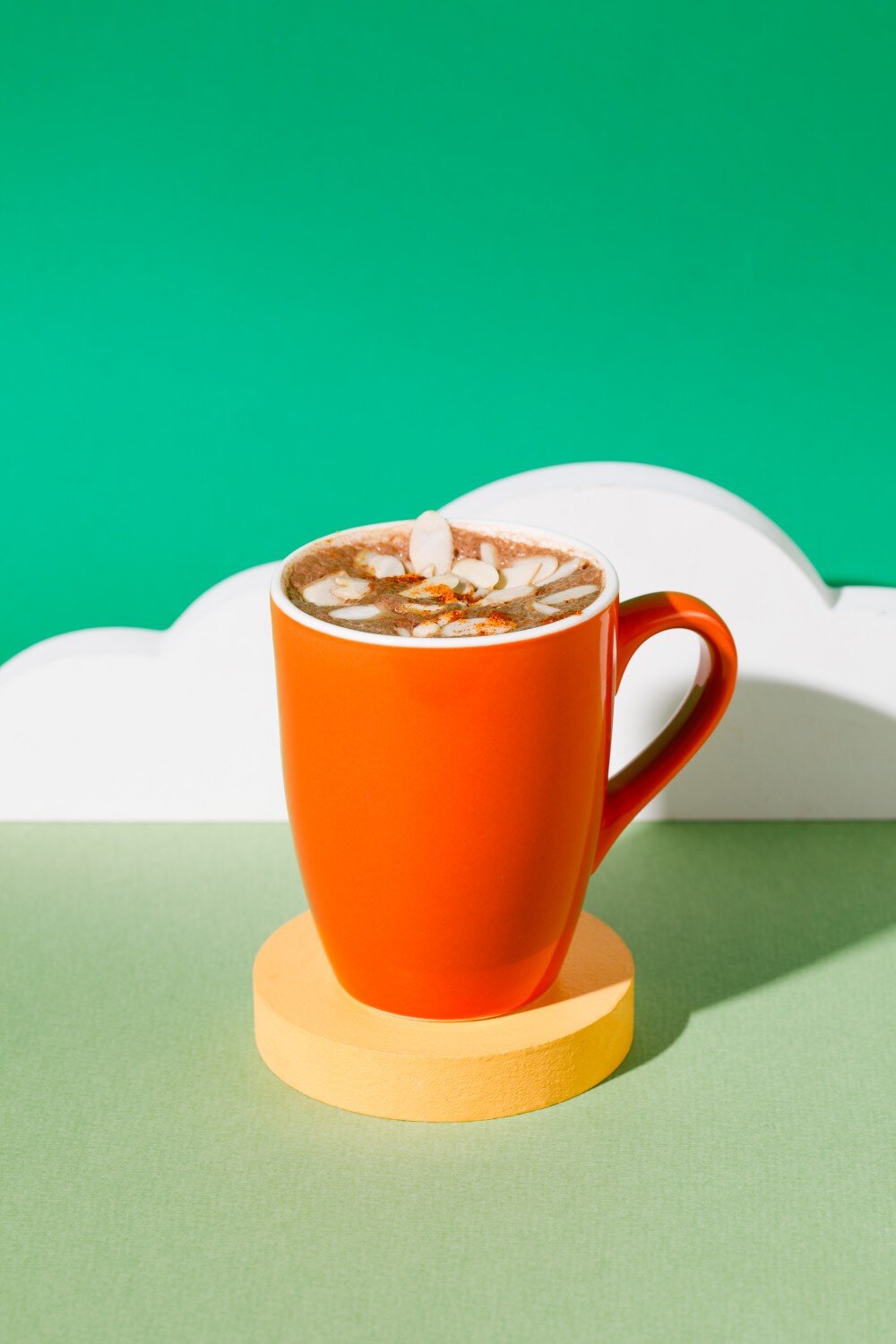 Состав: эспрессо двойной, какао, перец, протеин, молоко